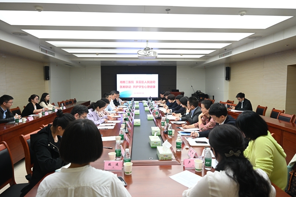 4月12日上午,芙蓉区人民政府副区长罗加祥一行来院交流、参观,双方就儿童青少年心理健康教育、中小学生心理健康管理平台构建等事宜进行了座谈交流。中南大学湘雅二医院党委书记柴湘平,党委副书记段绍斌,副院长张燕,医院精神病学科专家团队及相关职能部门负责人等参加了会议,会议由段绍斌副书记主持。