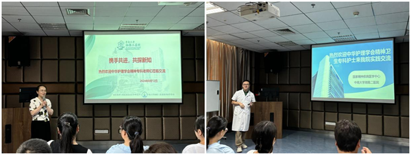 汪健健护士长从国家精神疾病医学中心、医院精神科的发展历程、学科建设、专业特色、人才培养、团队精神等方面为各位学员做了详尽的介绍,使学员们更加系统全面了解了我院精神科“全心护理”理念和模式。随后对本次专科护士培训的学员介绍了基地教学计划以及相关规章制度,使学员对后期的学习安排有了系统了解。