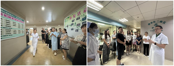 最后,在总带教袁媛老师的悉心引领下,学员们积极参与了破冰团体活动,有效消除了彼此间的陌生感,显著拉近了学员与老师们之间的心理距离。随后,学员们实地参观了医院环境布局、走访特色专科。通过实地走访,学员们对临床实践基地的运作流程、专业特色及患者治疗环境有了更为深入且直观地认识与理解,深切感受了湘雅二医院精神病学科的文化积淀和精神传承。