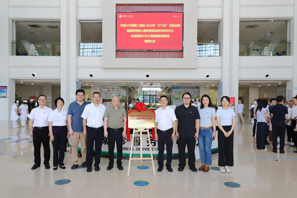 中南大学湘雅二医院自2021年与会昌县人民医院签订医疗联盟合作协议以来,派驻了多名专家进行点对点帮扶,并开展了多次帮扶活动。为进一步加强和提升江西省会昌县儿童青少年心理健康、帮助学校老师提升对学生群体常见心理健康问题的识别率、提高当地基层医院精神心理专业医护人员对青少年人群常见精神心理障碍的诊疗水平,我院国家精神心理疾病临床医学研究中心派出专家团队于7月19日赴江西省会昌县为会昌县人民医院青少年心理健康教育基地进行授牌,中南大学湘雅二医院党委书记柴湘平、副院长袁运长、党委副书记段绍斌,会昌县领导卢杜林等出席活动。