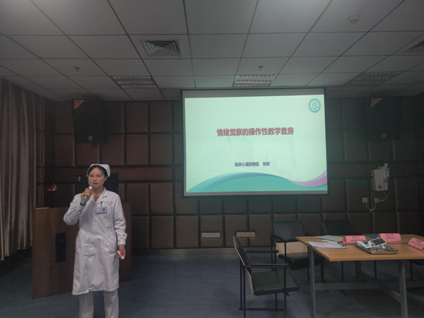 14时30分,教学查房活动正式拉开帷幕。由李辉老师带领两名规培人员及一名新进人员展开查房。她从教学准备、知识回顾、病例汇报、教学实践和讨论与总结5个方面,详细讲解了如何通过情绪觉察日志来帮助患者梳理情绪,深入阐述了写情绪觉察日志对于患者情绪管理和病情恢复的重要意义。三位学员在旁认真聆听、记录,并依次进行了操作展示。李辉老师仔细观察,一一指出他们在与患者沟通、信息收集以及日志指导等方面存在的不足之处,结合实际案例,深入浅出地进行了分析和纠正,使在场的每一位护理人员都深受启发。大家纷纷表示,作为一名护理人员,不仅要牢记自己的岗位职责,高质量开展工作,还要善于思考、善于总结,才能为患者提供更加优质、专业的服务。