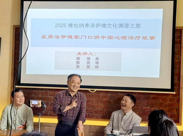 中南大学湘雅二医院国家精神疾病医学中心的张亚林教授和曹玉萍教授应邀参加会议,张亚林教授以“中国道家认知疗法”为题分享报告。“在弗洛伊德的家门口讲中国的心理治疗不是来踢馆的,而是来进行文化交流,彰显文化多样性”,张教授在报告中幽默地说。“中国道家认知疗法”是湘雅二医院张亚林、杨德森教授结合老子的哲学思想和西方心理治疗的形式创立的、具有我院自主知识产权的本土化心理治疗方法。与会听众反响强烈,体会着中国本土化实践与百年前西方经典理论的碰撞与交融。